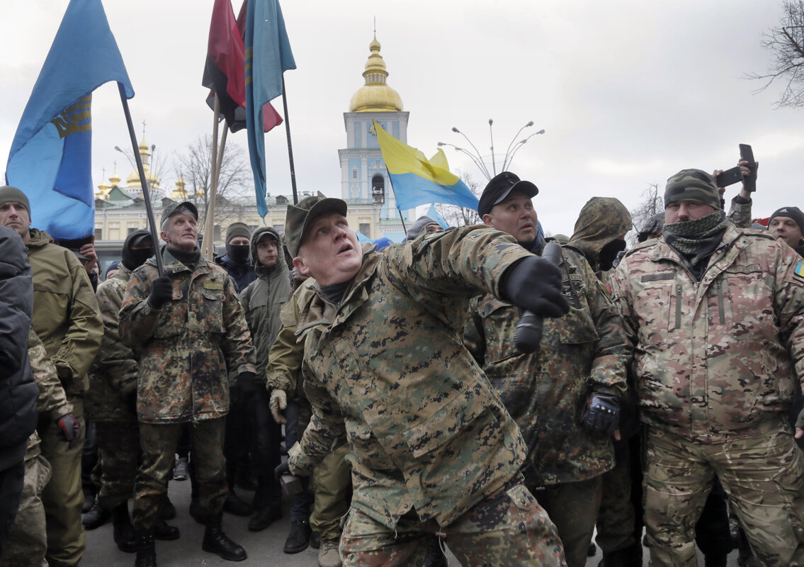 "We need to have a third Maidan," said Nikolai Kokhanovsky, a leader of the Organization of Ukrainian Nationalists, using the common term of the protests of 2014 and those of the 2004 Orange Revolution. New protests would "sweep away this corrupt government and pro-Russian oligarchs who have betrayed our revolution of dignity."
