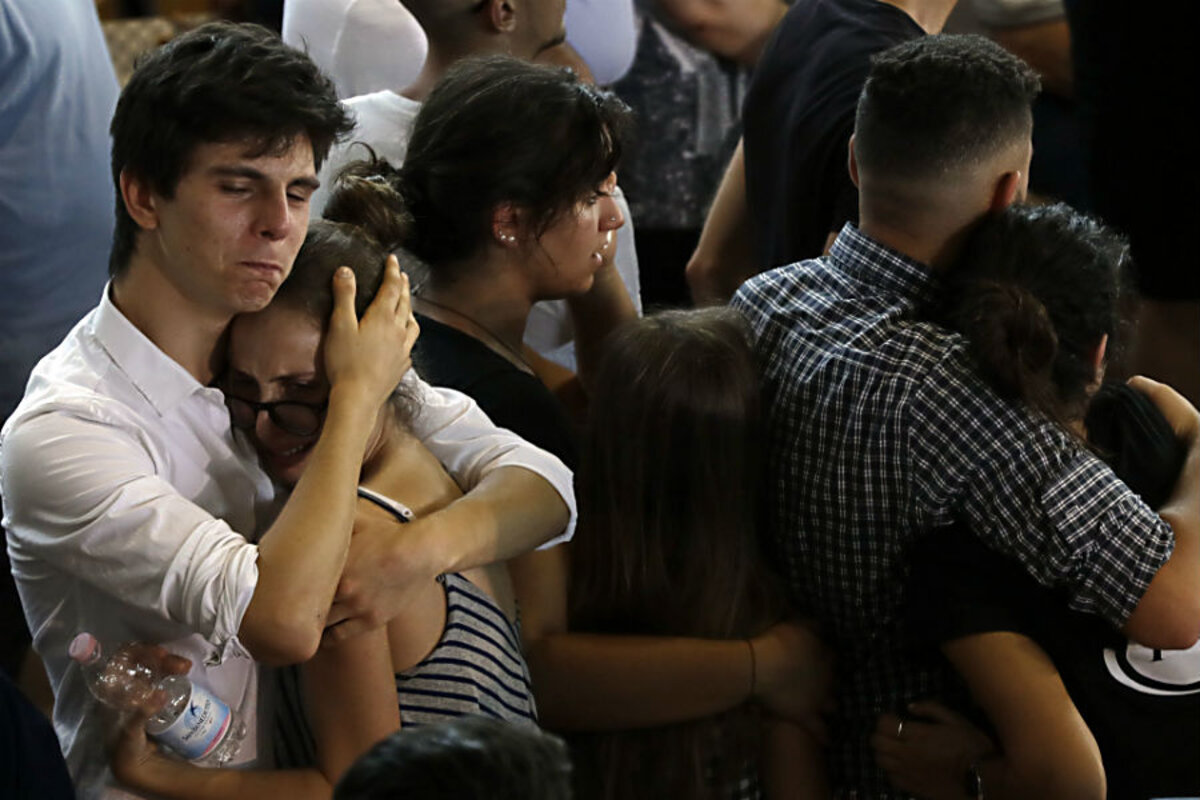 Before the mass funeral, people hugged and cried as they bid their final farewells to loved ones in the gym, which was transformed into a makeshift chapel for the ceremony. Among the victims were two girls, 18-month-old Marisol Piermarini and 9-year-old Giulia Rinaldo, whose younger sister survived against the odds beneath the rubble, still holding her dead sibling.