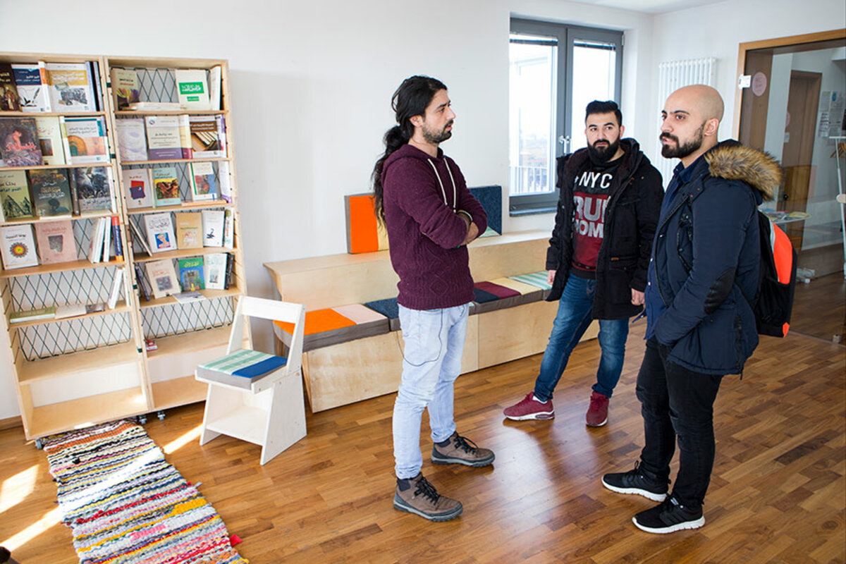 Once in Germany, he faced more hardships 鈥 loneliness, lack of work, uncertainty over whether he would be able to get his mother and sister out of war-ravaged Aleppo. But, with drive and persistence, he has started to create a new life in a new country, culminating in this moment of triumph in Berlin. He picks up a microphone and inaugurates, along with his partners, a project that will help others do the same 鈥 Between Us, an Arabic-German-English library and cultural space. His confidence and gregariousness fill the room as he tells the crowd, a mix of longtime Berliners and newcomers, how he envisions Between Us as a place where locals and new arrivals can discover what they have in common. It is a place, he says, where those navigating their way in Germany can make connections, much as Qaiconie has done himself.