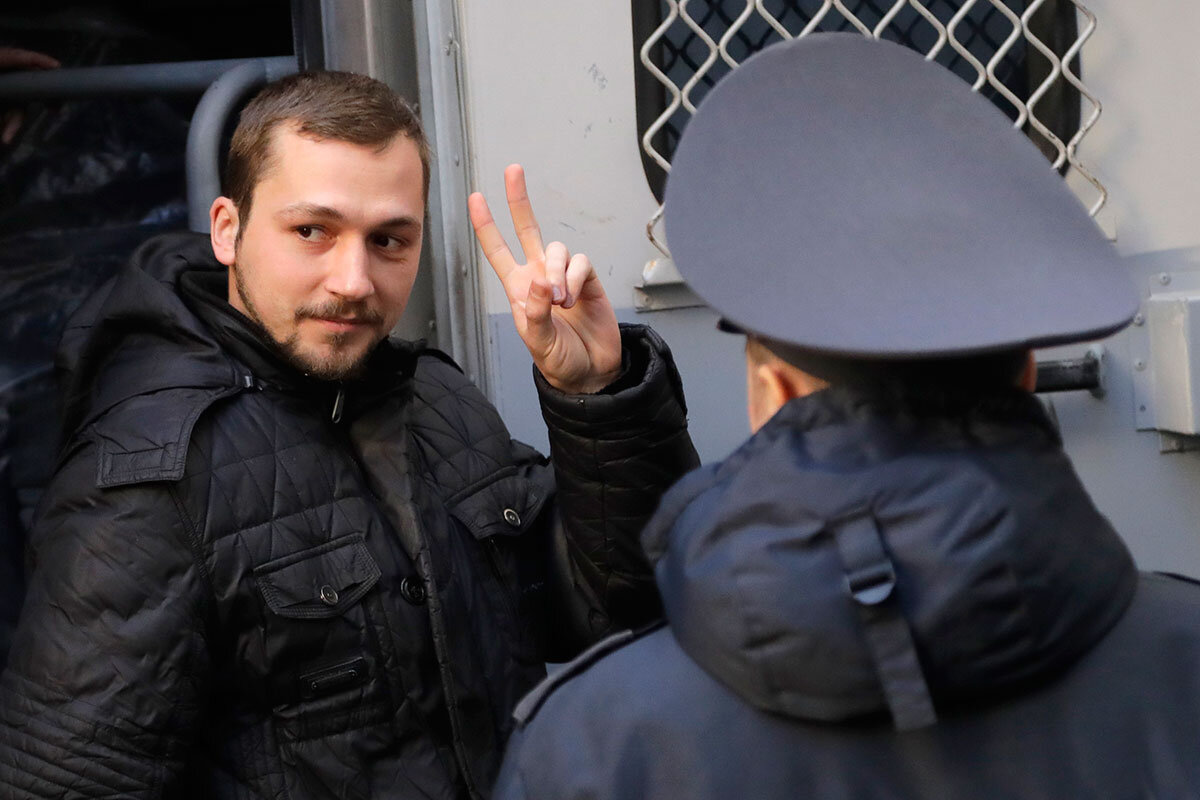 Mr. Sankevich and hundreds of other protesters were met with police in riot gear, blocking off access points to the square where the demonstration was set to take place. Nearby metro stations were also closed and three water cannons were kept on standby.