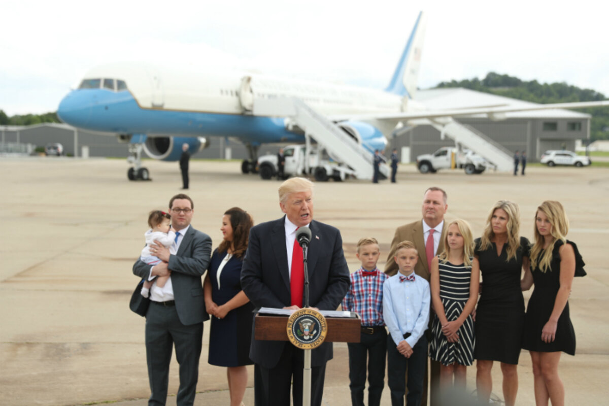 Before the speech, Trump met aboard Air Force One with a pair of families the White House said were "victims" of the Obama-era health care law that the president and congressional Republicans want to repeal and replace.