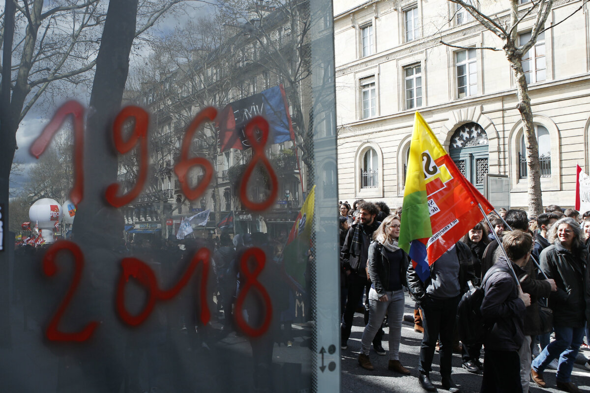 Fifty years on, France is once again rocked by widespread protests. "1968-2018: Revolution!" read banners at this year's demonstrations, which saw students blocking French universities to protest Mr. Macron's education reforms, and railway workers staging prolonged strikes against plans to overhaul the country's national rail company.