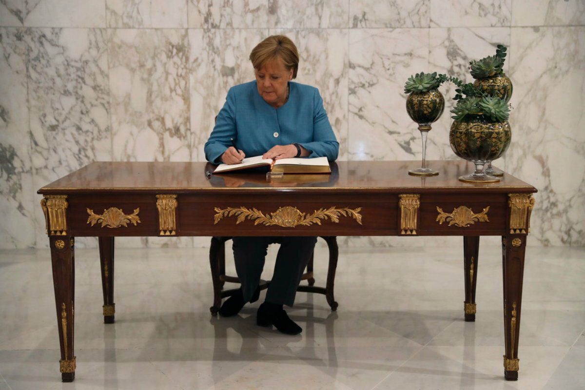 Ms. Merkel is visiting the Middle East amid a serious domestic row over migration that's straining her ruling coalition.