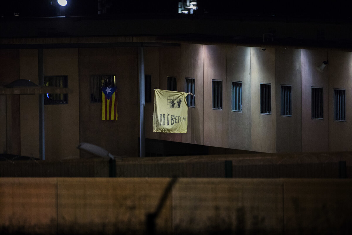 Shouts of "Freedom!" and "We want you home!" from outside are met with "We want to be out!" coming from the prison. And joy erupts when the unofficial Catalan flag embraced by secessionists, the "estelada," appears through the bars of a cell window.