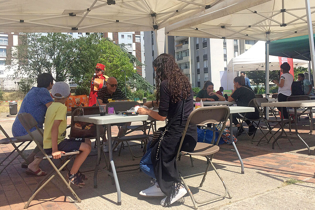 The Esplanade Salvador Allende, a sprawling concrete slab at the center of a half-dozen social housing blocks, is normally a place people pass through to go to work, home, or the nearby community center. But today, the square here in Argenteuil is acting as a pop-up meet-and-greet for residents, with activities and entertainment organized by City Hall.