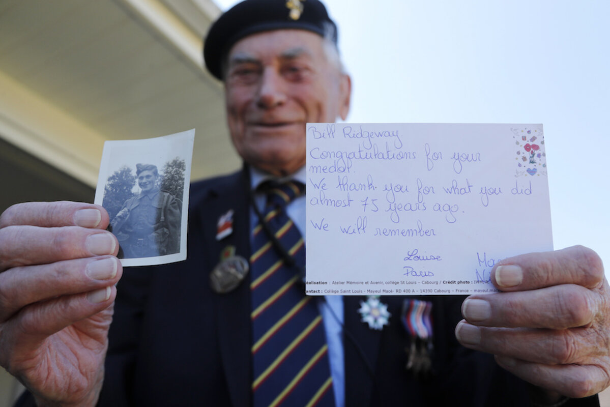 The students did more than stay in touch. Mr. Ridgewell's pen pal and another girl from a nearby school traveled to England last year to watch him receive the Legion D'Honneur, France's highest military and civilian decoration. He's quick to show off a cherished snapshot of the event.