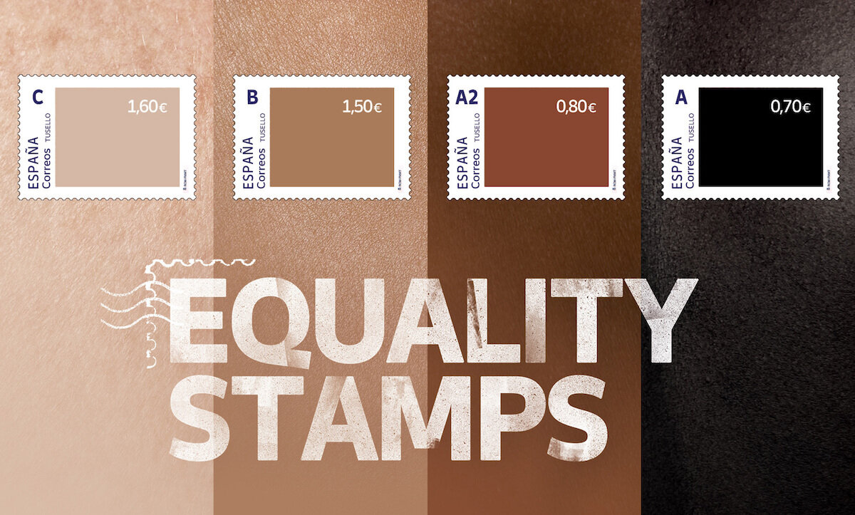 State-owned Correos Espa帽a this week issued a set of four stamps in different skin-colored tones. The darker the stamp, the lower the price. The lightest color costs 1.60 euros ($1.95). The darkest one costs 0.70 euros ($0.85).