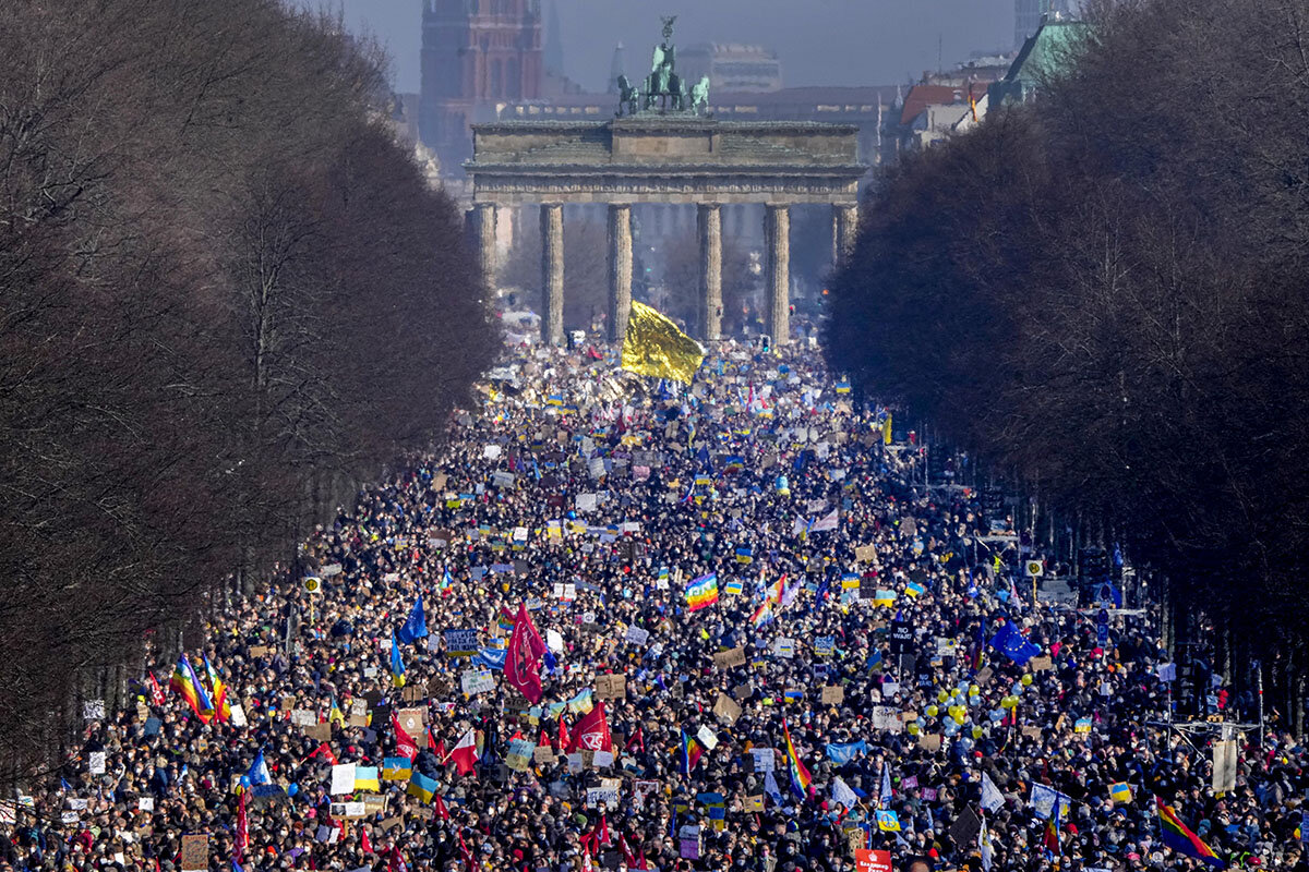 Mr. Scholz鈥檚 speech called on all EU members to work for the greater good, rather than their individual country. Across Europe, hundreds of thousands appeared ready to meet this challenge, as they rallied from Rome to Berlin to Prague, waving signs saying 鈥淣o War in Ukraine鈥 and 鈥淪top Putin.鈥