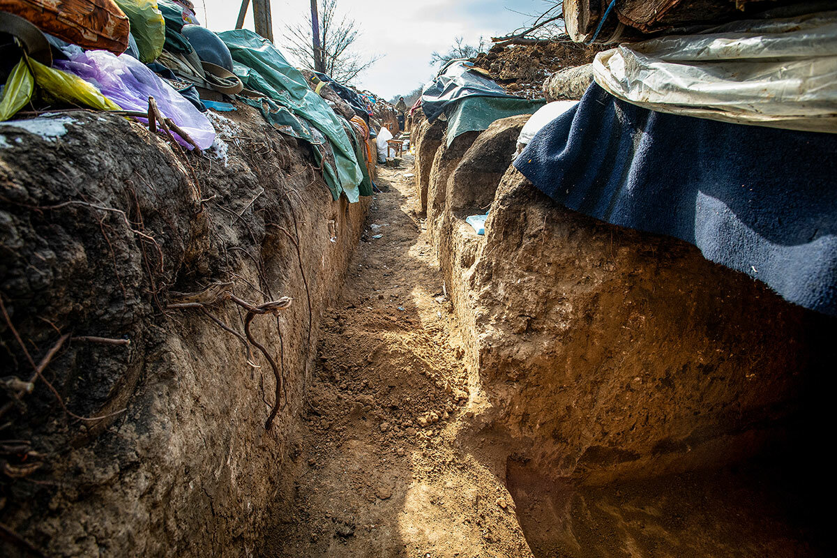 Checkpoints made of concrete blocks, anti-tank barriers, and sandbags have been moved into place. Soldiers along the front lines are armed with anti-tank weapons 鈥 some partly visible under tarpaulins 鈥 and have聽dug and reinforced trenches.