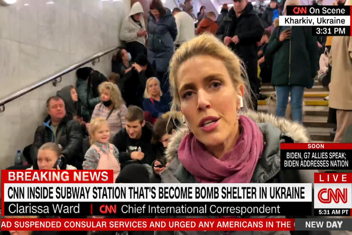 Clarissa Ward interrupted her live TV report on Ukrainian refugees to help a distraught older man, then a woman, down a steep and explosion-mangled path, gently urging them on in their language.
