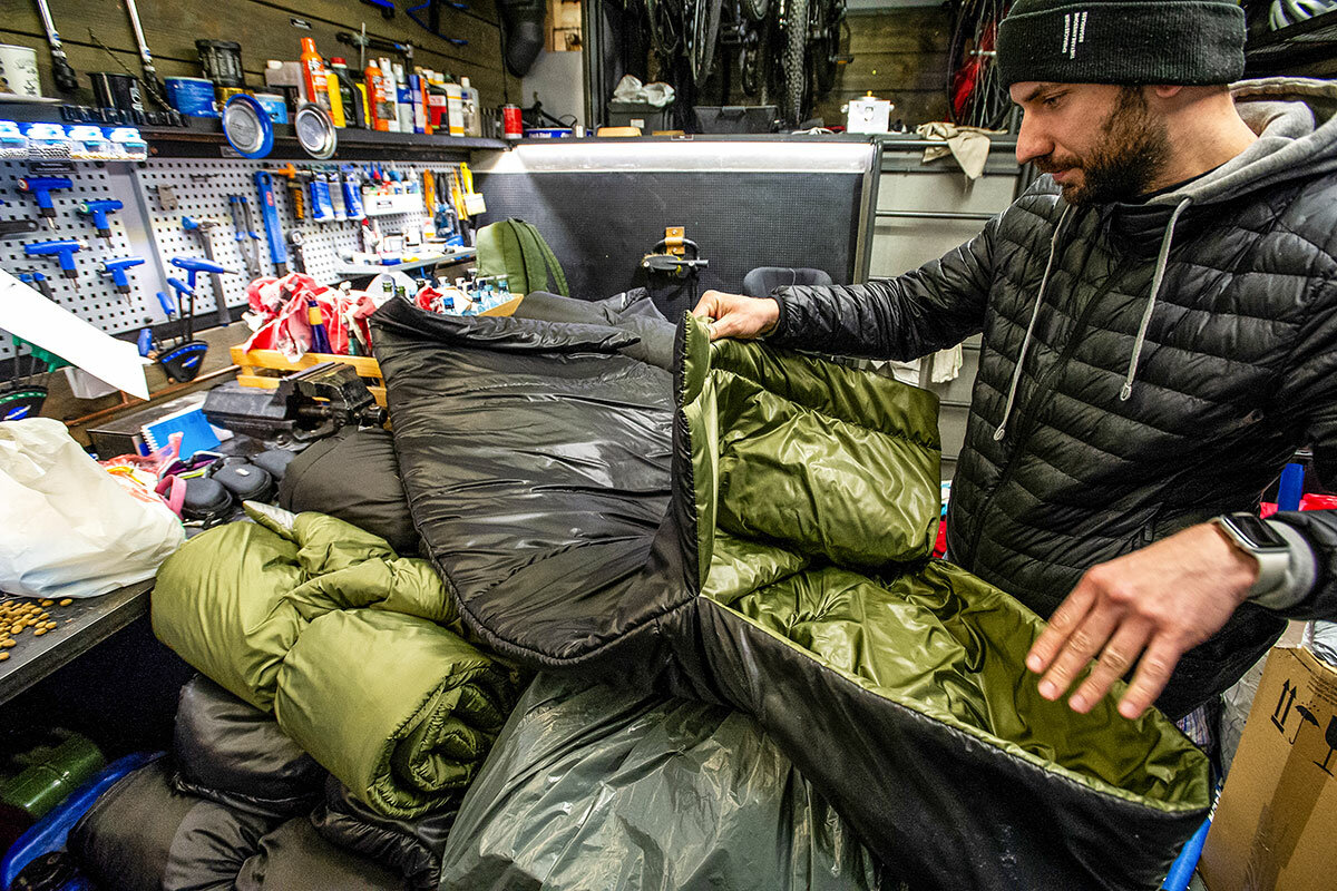The production line made 170 Molotov cocktails on the first day, then 450 the second. But then production switched to making sleeping bags for troops, and finding tactical gear like gloves and kneepads.