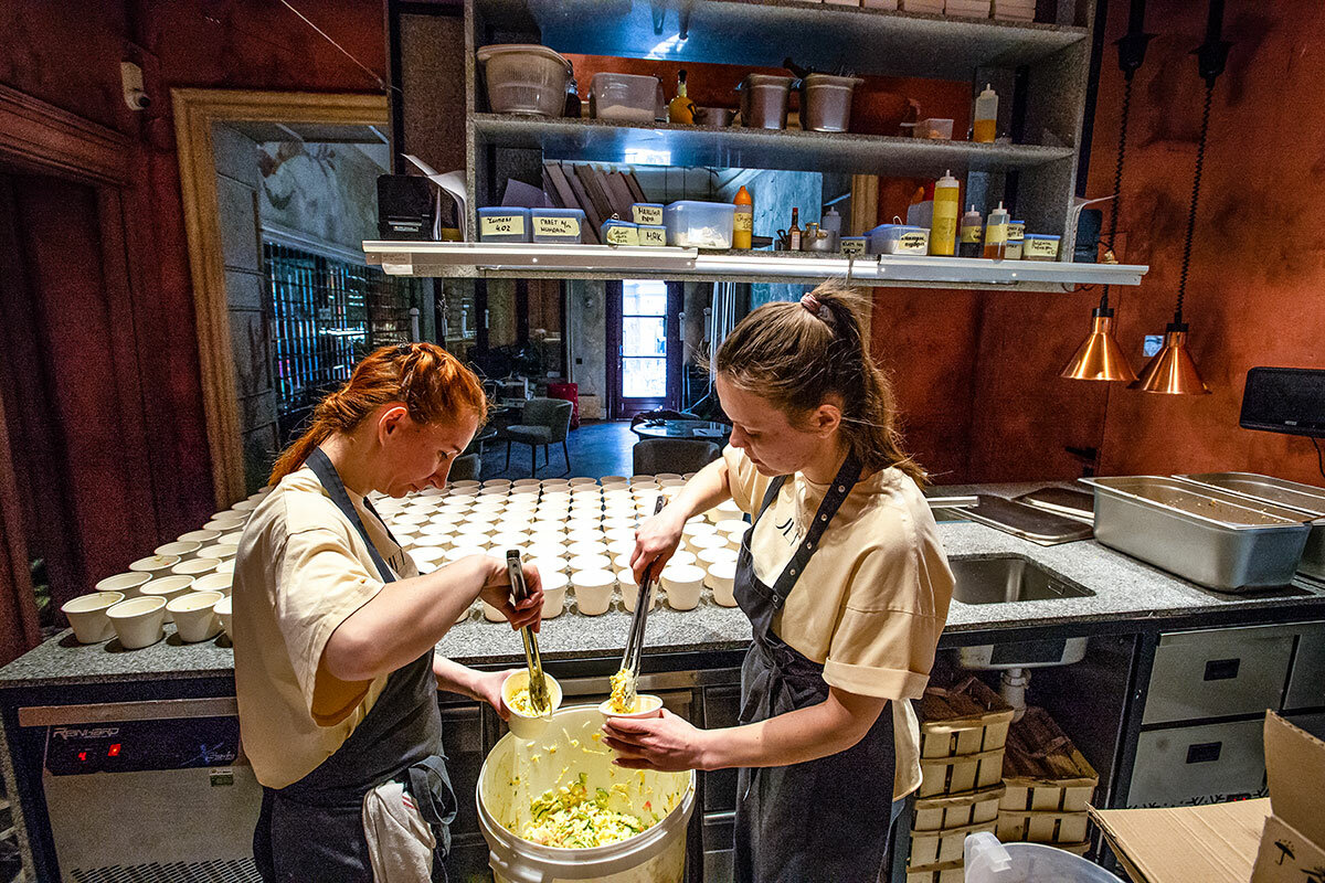 But she鈥檚 not at the food and wine bistro where she normally works 鈥 it closed when Russia invaded Ukraine in late February. Instead, the young cook is in a cramped kitchen, after curfew, throwing together a bulgur risotto for her 20-something housemates brought together by war.