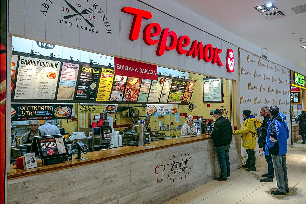 At the food court upstairs, McDonald鈥檚 and KFC have been shuttered for weeks. But there is still a pizza stand, an Asian wok place, and a Vietnamese restaurant. Baskin-Robbins continues to dispense about a dozen flavors of ice cream. Teremok, a Russian fast-food outlet that serves up borscht, blini (pancakes), pelmeni (meat dumplings), and Russian salads (vegetables in mayonnaise), seems to be enjoying newfound popularity. Irina, eating some combination of that with her preteen son, Vova, insists the choices are probably healthier now.