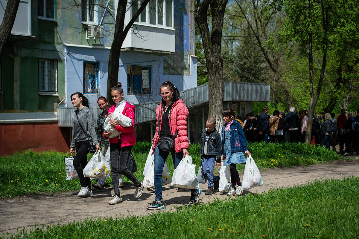 The rising tide of uncertainty is raising levels of fear. At a food distribution in Kramatorsk, for example, where dozens of people wait outside an apartment block to receive potatoes, tinned food, and other staples from a church charity, a woman in a blue puffer jacket sidles up to a visitor with a camera and asks that photos not be taken.