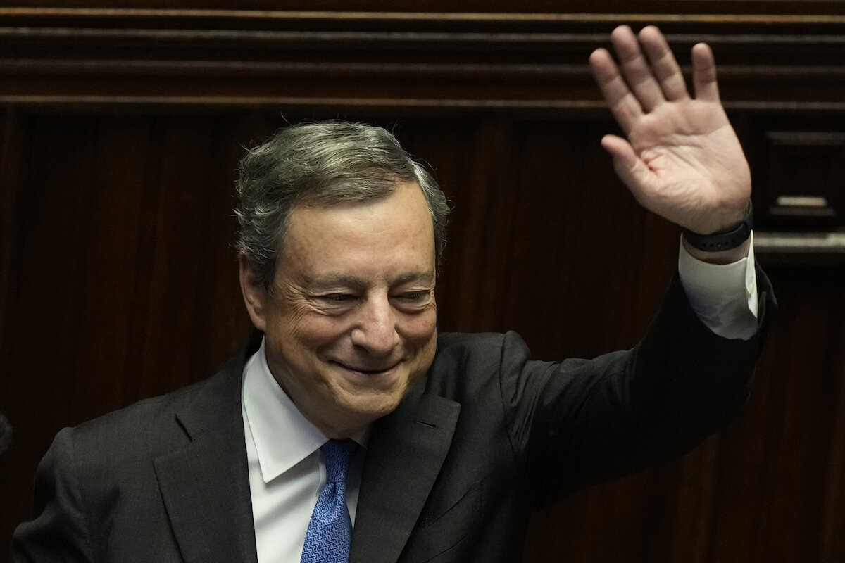 Mr. Draghi, who is not a politician but a former central banker, was brought in 17 months ago to navigate the economic downturn caused by COVID-19. But his government of national unity imploded Wednesday after members of his uneasy coalition of right, left, and populists rebuffed his appeal to band back together to finish the Italian Parliament鈥檚 natural term.
