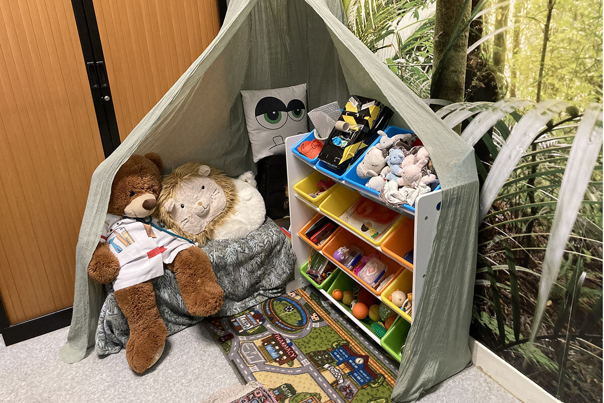 The child-sized teddy bear sits under a tent in a cozy corner of Principal Caroline听Loiseau鈥檚听office, in what has been dubbed the 鈥淚nfirmary of Emotions.鈥