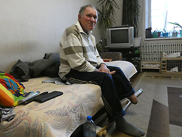 Mr. Hrushka recounts his misfortune without self-pity as he sits on a bed in his living room, crutches on the floor below him. His pale blue eyes pool with tears only when he describes the devastation of war. Homes reduced to ashes. The screams of farm animals ripped open by artillery. A neighbor sprawled dead in his yard, face turned toward the sky.
