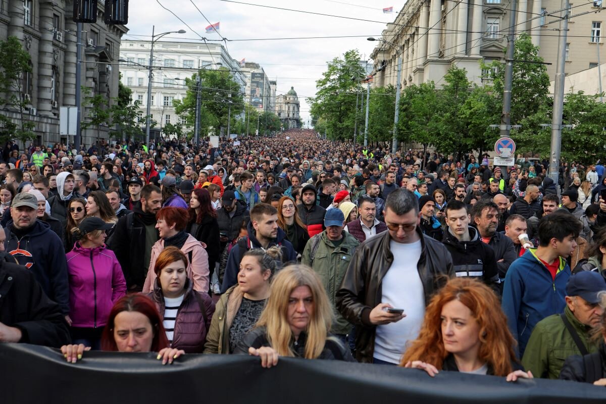 As the demonstrators passed the government buildings, many chanted slogans decrying Serbia鈥檚 populist president, Aleksandar Vucic, whom they blame for creating an atmosphere of hopelessness and division in the country that they say indirectly led to the mass shootings.