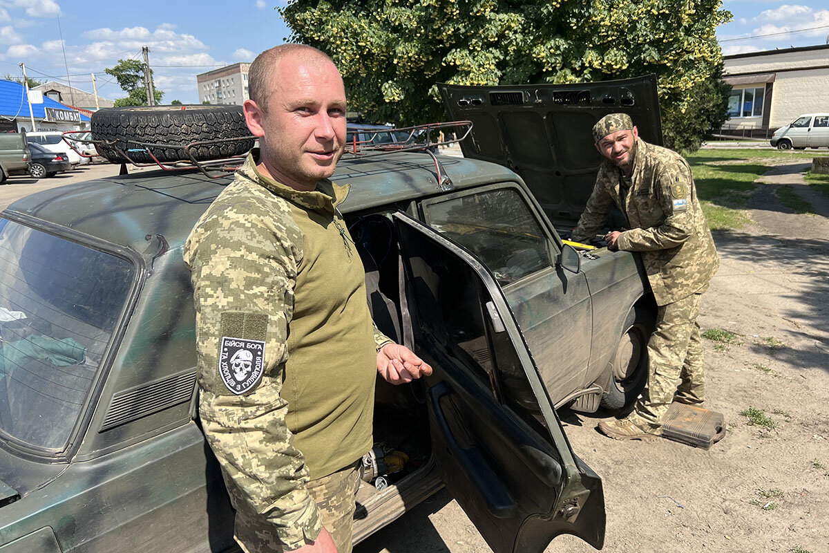 It鈥檚 the case for Vadym Khokhol, who is supervising buddy Serhii as he replaces the burned-out generator in the vehicle that the two use to get to their battle positions.