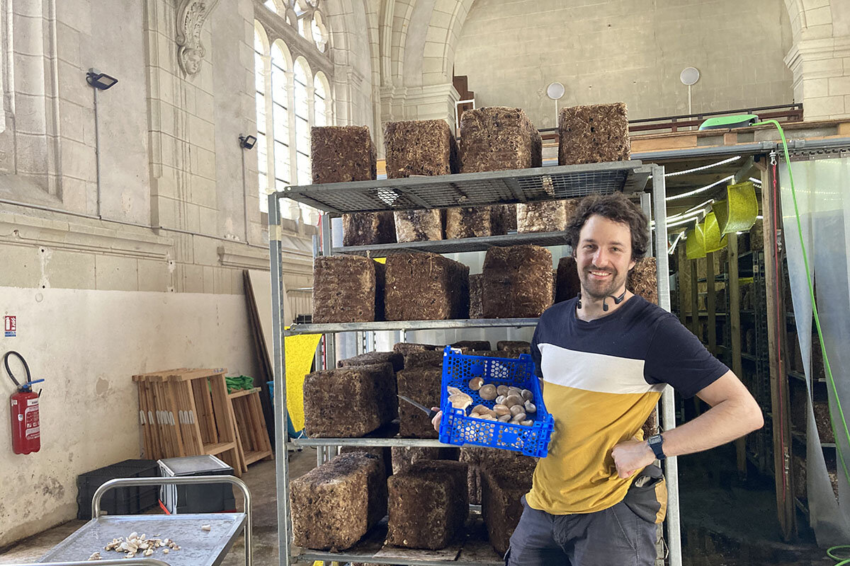 While a church is perhaps an unlikely setting for a mushroom harvest, the conditions are perfect: warm and humid, with no major temperature variations. Since 2020, Le Champignon Urbain has been operating here, after winning a competition organized by Nantes City Hall in its search for a way to save the long abandoned 19th-century chapel.
