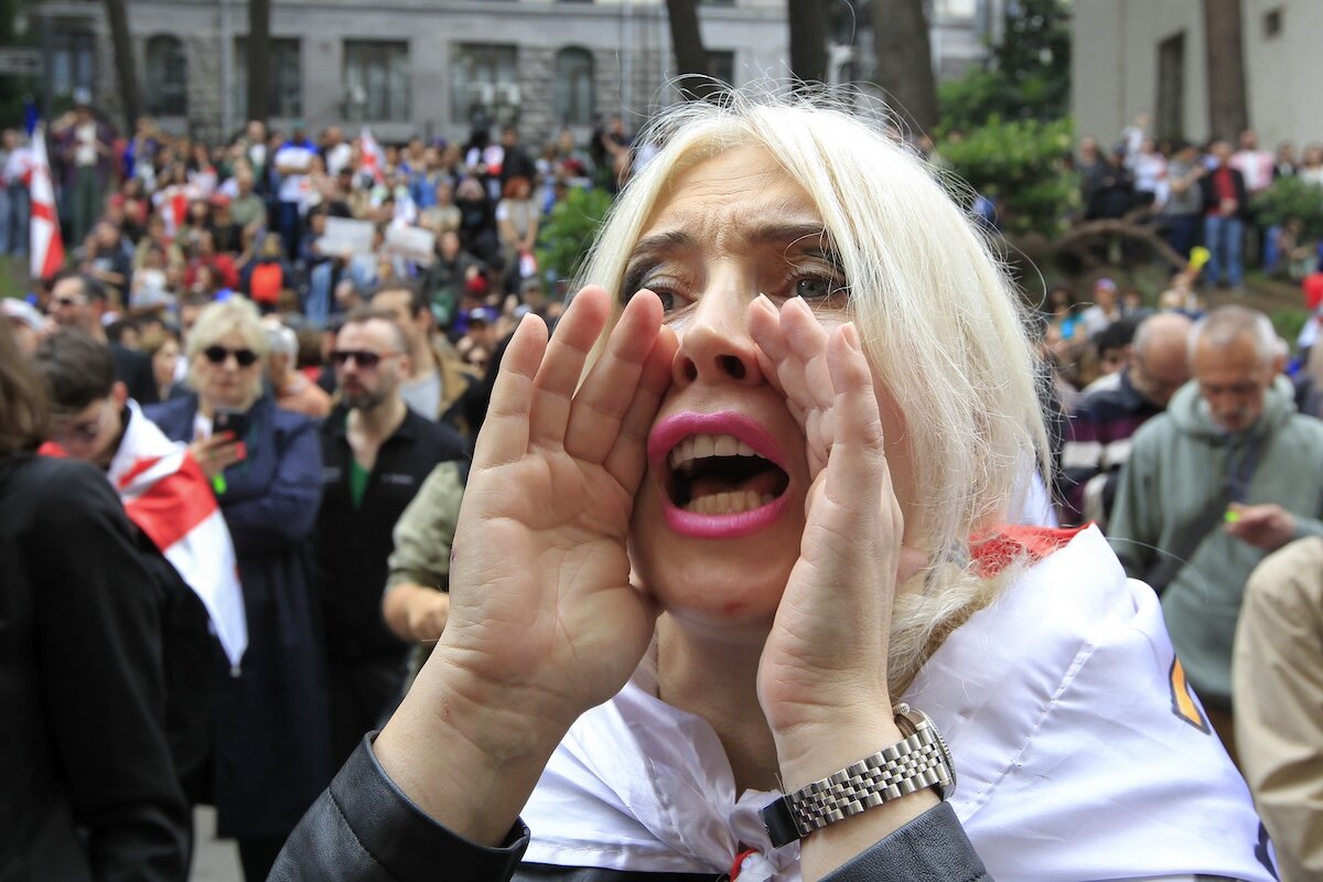“We are physically witnessing, literally witnessing, how Georgian citizens, how members of the Georgian Parliament are selling out our country,” said another protester, Mariam Geguchadze.