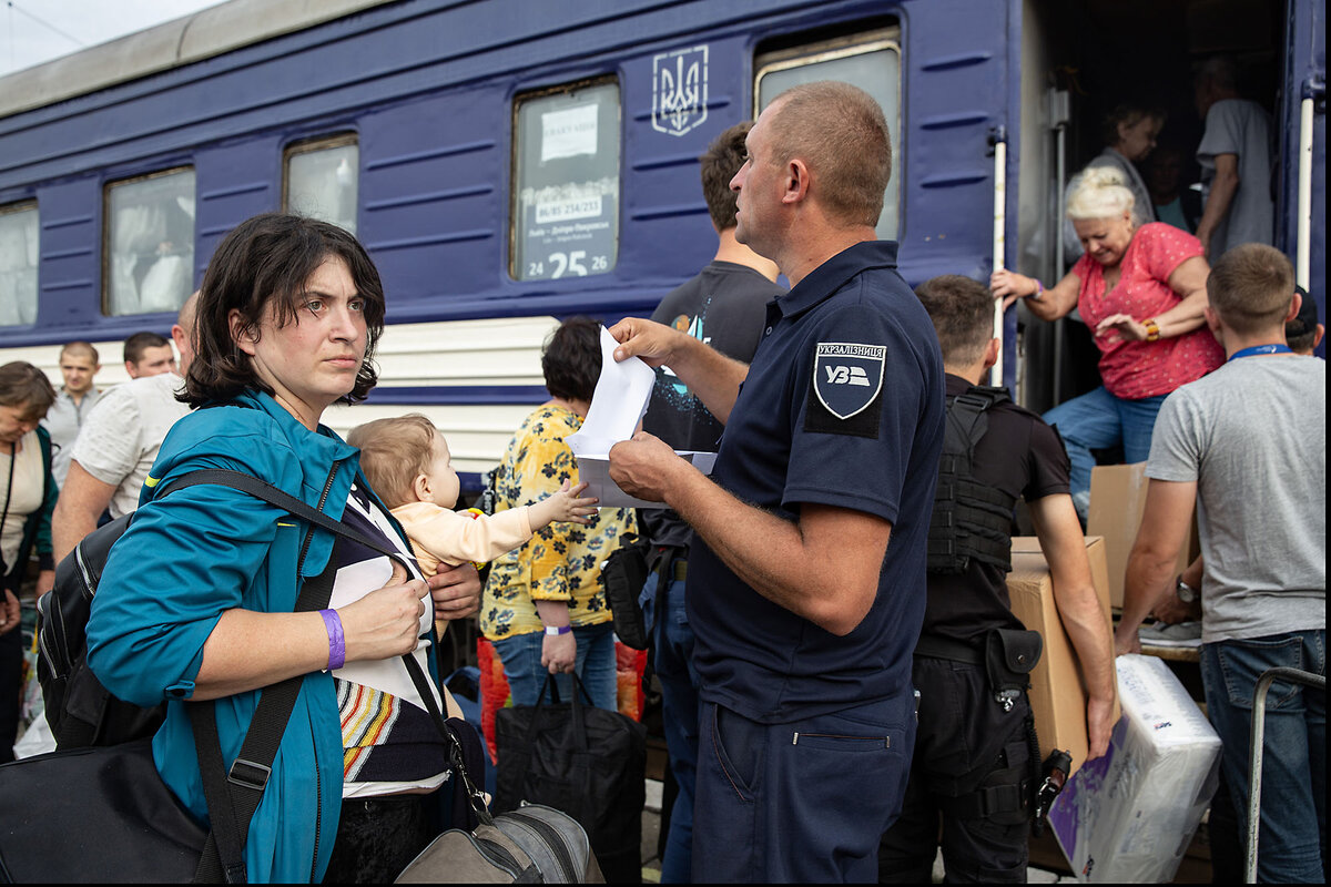 Safety is an elusive destination. But the evacuation of Ms. Savchenko and a bedridden neighbor from this mining town, in the Pokrovsk district of Donetsk, brings relief to their social worker.