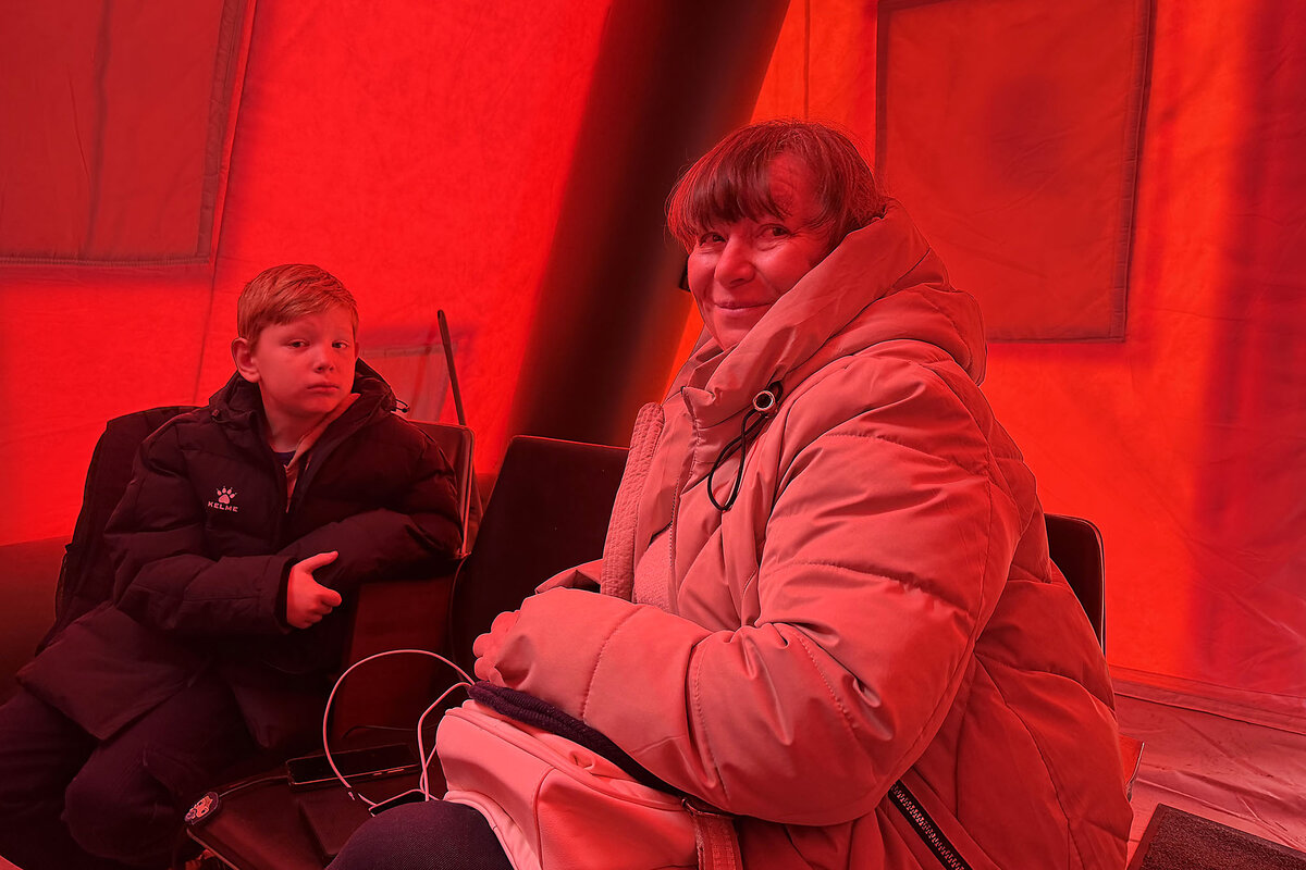 Ms. Tarasenko was among those seeking support at an 鈥渋nvincibility point鈥 in an orange tent. A common sight in front-line regions, these pop-up relief centers allow people to charge their phones, get a cup of hot tea or coffee, even a warm meal in an emergency.