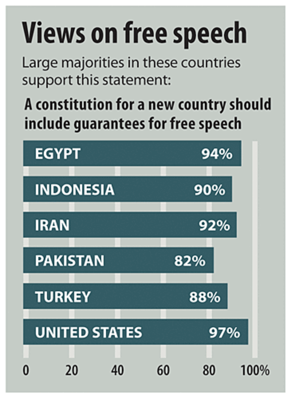 鈥ubstantial majorities in nearly all nations say that if drafting a new constitution, they would guarantee freedom of speech (see chart, below).
