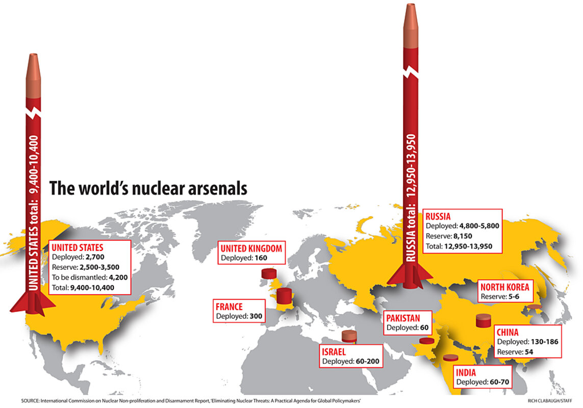 Yet Nunn and others say the dangers also encompass the possibility of human errors and mistakes by the traditional nuclear powers. US and Russian missiles, for instance, remain on a five-minute "quick launch" timetable, which Nunn calls a situation "bordering on insanity." Plus, as nations turn more to nuclear power as an answer to global energy needs, there will be an exponential increase in the reprocessing of plutonium or uranium, which can be used in making a bomb.