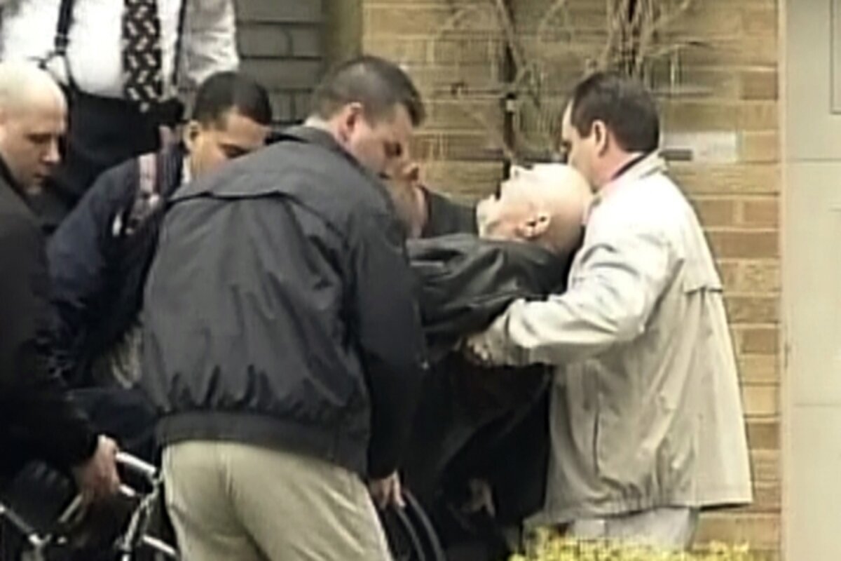 As he was carried from his home, Demjanjuk had his head flung back, his mouth hung open and he moaned in apparent pain, infuriating relatives who said he had been promised a stretcher in consideration of his back pain.