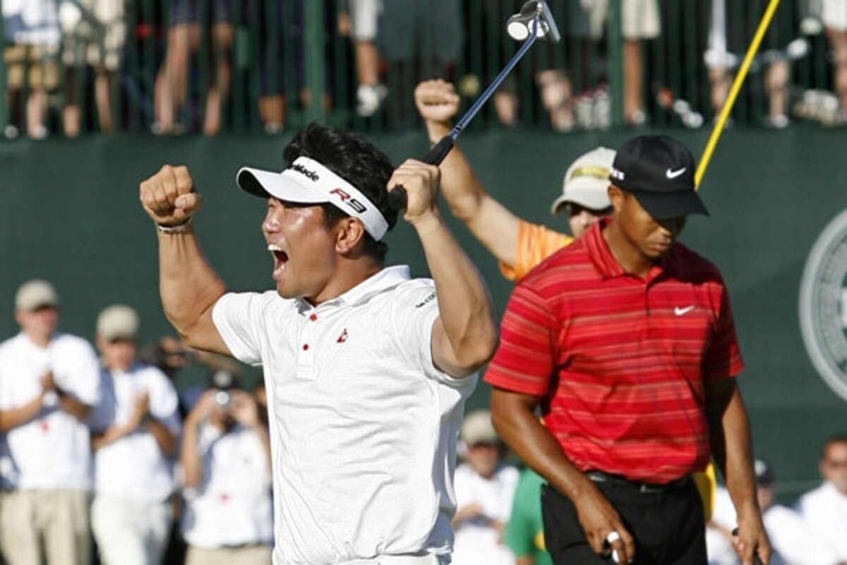 NBC golf analyst Johnny Miller is always asking from the broadcast booth: When is someone going to stand up to Tiger in a final round? On Sunday, an unknown South Korean who used to be a bodybuilder did.