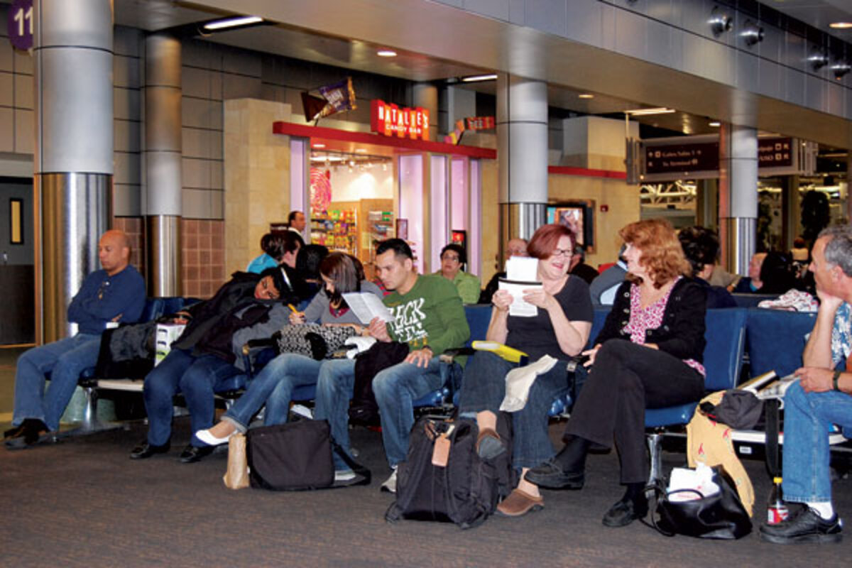 Texas was part of Mexico until 1836, and few states have a more fluid border with the southern US neighbor. Mexican shoppers frequently take the 鈥渟chool-bus plane鈥 for a weekend of outlet shopping in Texas. On this particular Monday the gate was accented with the colors of 础茅谤辞辫辞蝉迟补濒别, Ann Taylor, Nike, Calvin Klein, and Victoria鈥檚 Secret shopping bags.