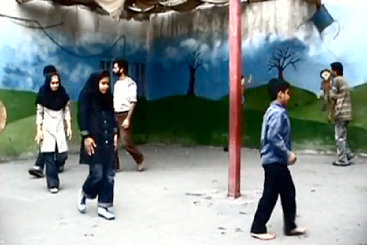 In one scene of the 36-minute film, a dozen or so children and teenagers 鈥 all Tehran residents 鈥 circle the building鈥檚 sparse courtyard, which is enclosed by cobalt-blue walls. Mr. Pourazari 鈥 a tall, darkly handsome man with mussed curly hair and wire-rimmed glasses 鈥 recites verses from a children鈥檚 poem by famed Iranian poet Ahmad Shamlou, directing the intensity of the youngsters鈥 movements as they wave their arms in concert to the poetry鈥檚 expressions of sorrow, hope, and patience.