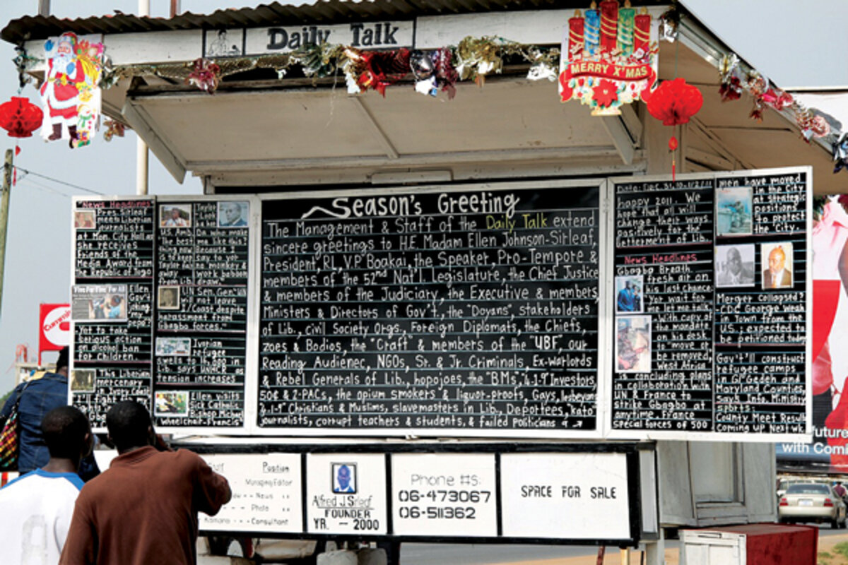 Print newspapers face competition in Liberia, too – from a chalkboard