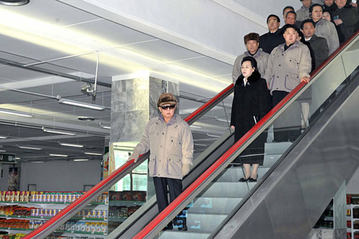 The North Korean government media released a still photo of what is believed to have been Kim Jong-il鈥檚 last public appearance before he died on Saturday. He's riding an escalator into a new supermarket in Pyongyang. The photo is undated, but the Korean Central News Agency reported separately that Kim had visited a supermarket on Dec. 15, 2011 鈥 two days before his reported death.