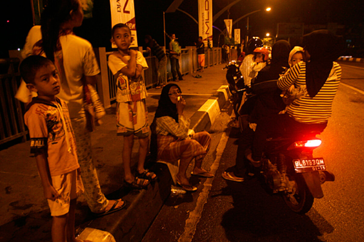 One witness told local reporters that about 100 people had gathered on a bridge in the city to check if there was any change to the surface height of the river, an indicator of a possible tsunami. In 2004 the sea off the coast of Aceh rapidly retreated after the magnitude 9.1 quake, and a wall of water swept over the city.