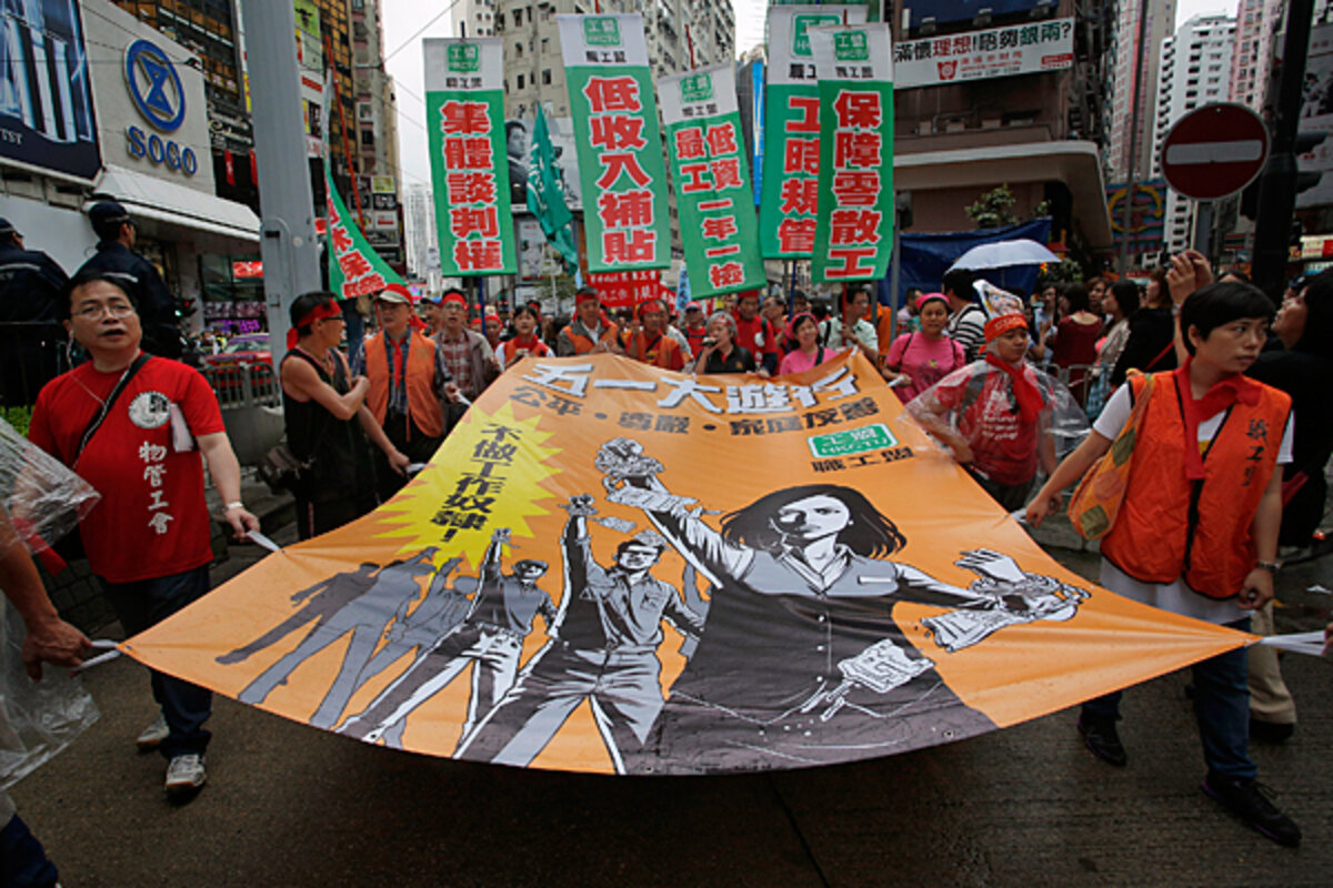 The disaster at the factory, which manufactured clothing for several low-end Western retailers, touched off global outrage about the working conditions of garment workers across the developing world. In Phnom Pehn, Cambodia, workers rallied for higher wages and safer working conditions. In Manila, Philipines, where labor unions are banned, workers marched to demand the right to organize. And in Hong Kong, thousands turned out in support of striking dock workers, calling for wages that would help close the income gap between the country鈥檚 rich and its poor.