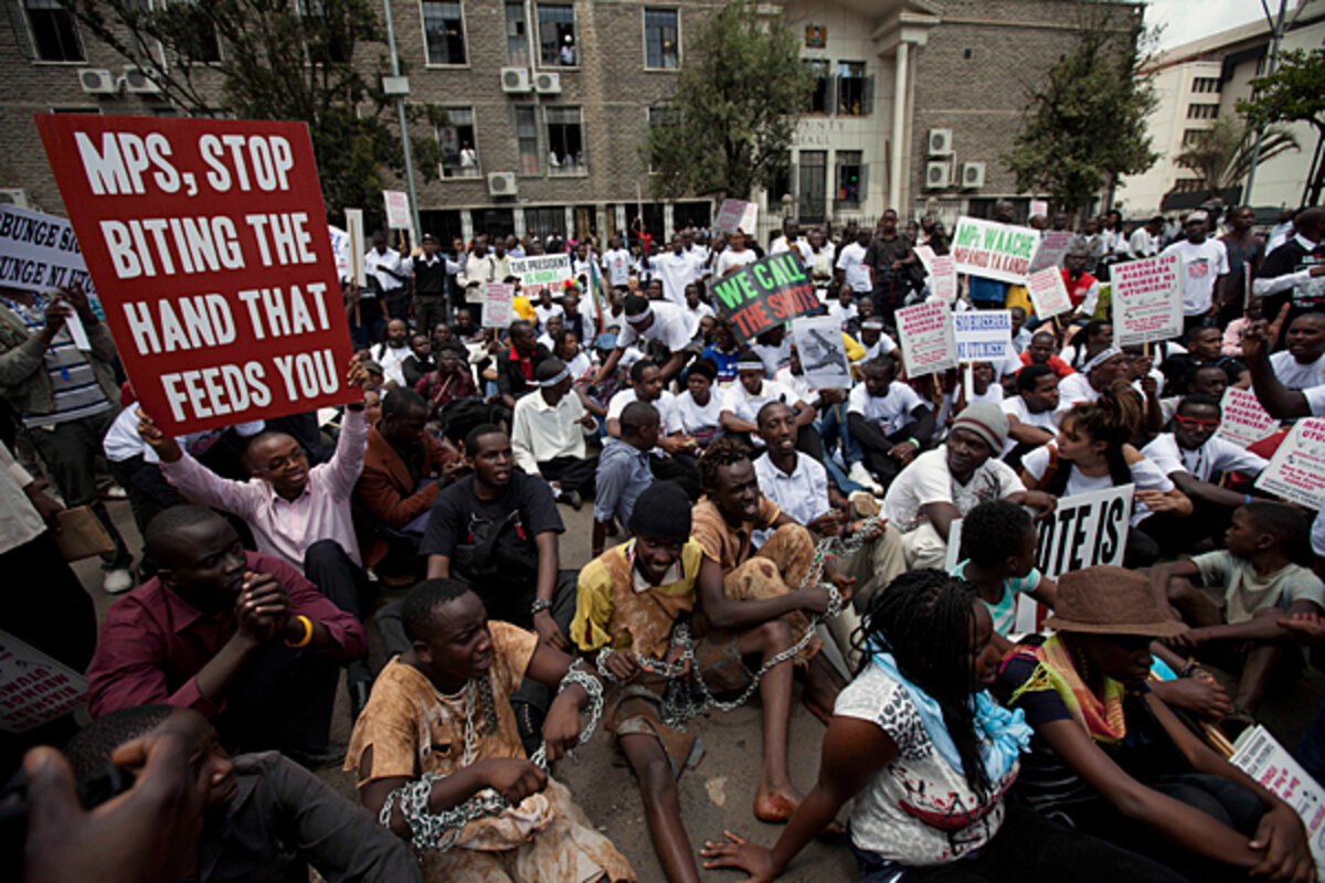 The protests began with a march through Nairobi's streets, with demonstrators chanting and carrying placards critical of Members of Parliament (MPs). Protesters had planned to then go inside and "Occupy Parliament," but that proved difficult after police in riot gear surrounded the building.