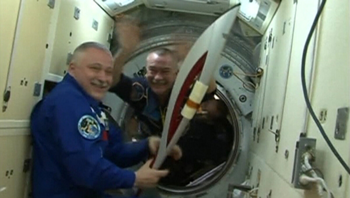A Russian rocket delivered an Olympic torch to the International Space Station today, in preparation for the first-ever spacewalk with a torch on Saturday. The extraterrestrial delivery, made by a three-man crew, adds another destination to Russia鈥檚 globe-hopping, record-setting Olympic relay 鈥 and once again showcases Russia's ambition to make the Sochi Games a celebration of the country's global resurgence.
