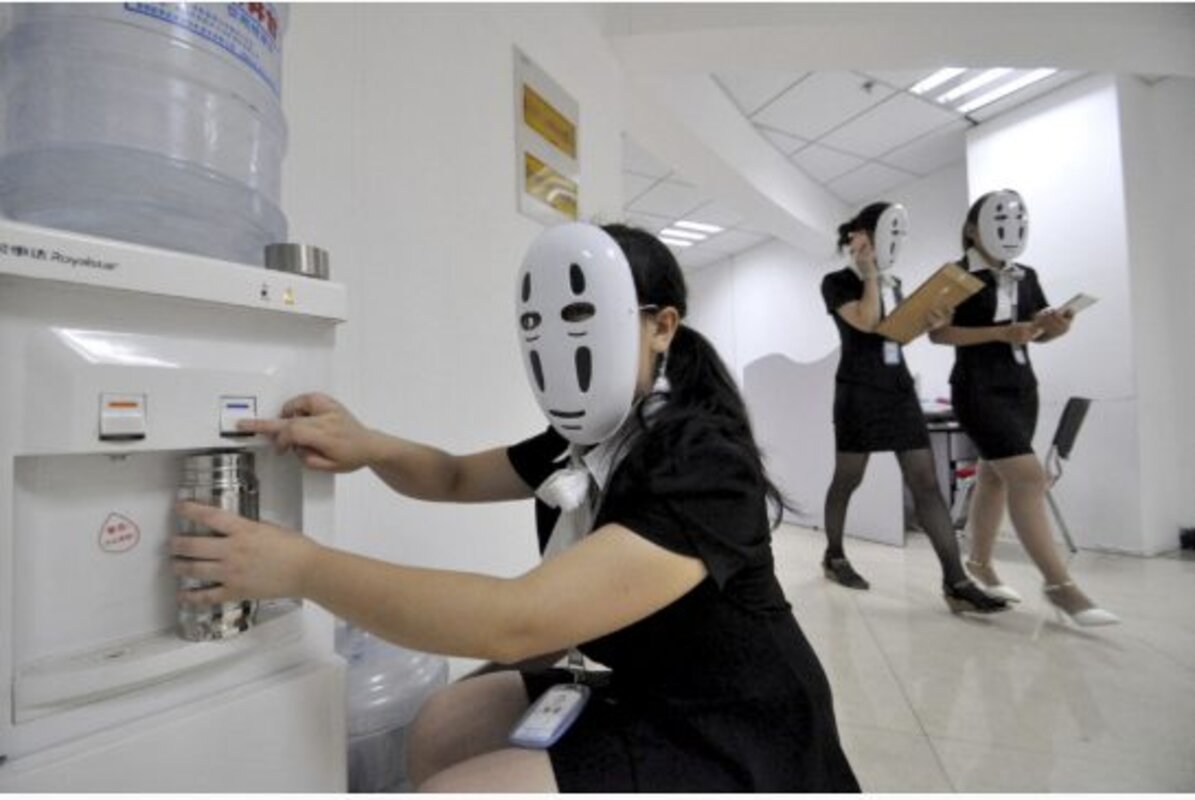 If you walked around some companies in Handan, in the聽Hebei province of Northern China, on Tuesday, you鈥檇 have been confronted by a sea of employees all wearing white masks. Some of the employees wore the 鈥淕uy Fawkes鈥 masks also used by hacking group 鈥淎nonymous,鈥 while others sported the robotic white covers worn by the character 鈥淣o-Face鈥 in the 2001 Japanese film, "."