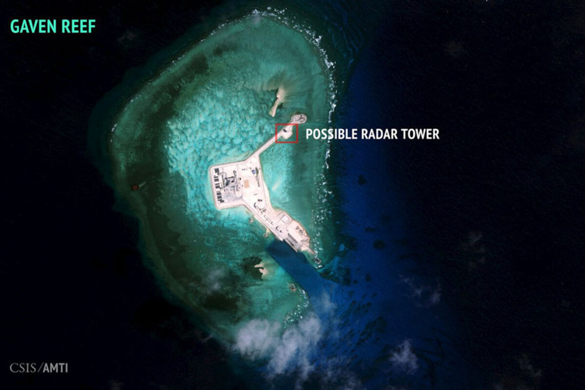 A report released Monday by Washington鈥檚 Center for Strategic and International Studies (CSIS), Asian Maritime Transparency Initiative says overhead images of the artificial island above Cuarteron Reef from January to mid-February show two probable radar towers and a number of 65-foot poles.听