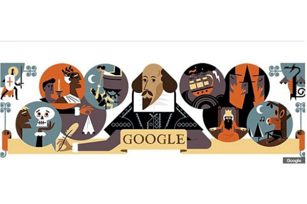 Google upped its literary punch on April 23 by putting on the search-engine doodle stage both William Shakespeare and a host of his most beloved literary references.