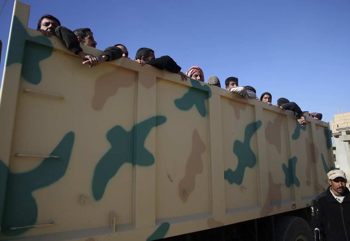 Then the main rush came 鈥 hundreds of civilians racing forward on a dirt road. The troops ordered them to halt, saying they had intelligence that IS might send suicide bombers disguised as civilians. One of the men raised his shirt to show that he wasn't armed, saying he was desperate for food.