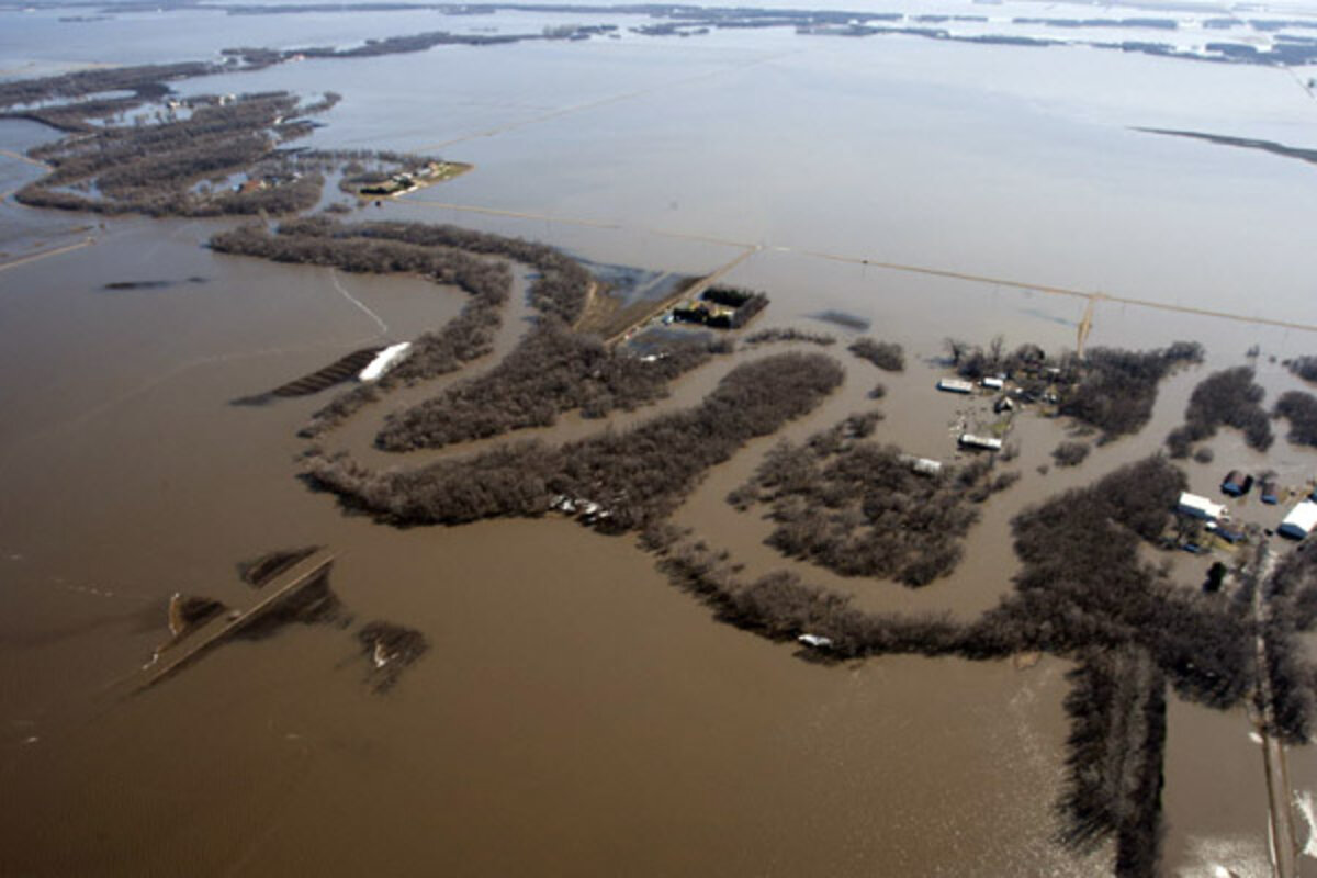 No major breaches in Fargo-Moorhead's dikes have been reported, and the focus turned to rural communities that sit as islands within a series of lakes that have emerged.