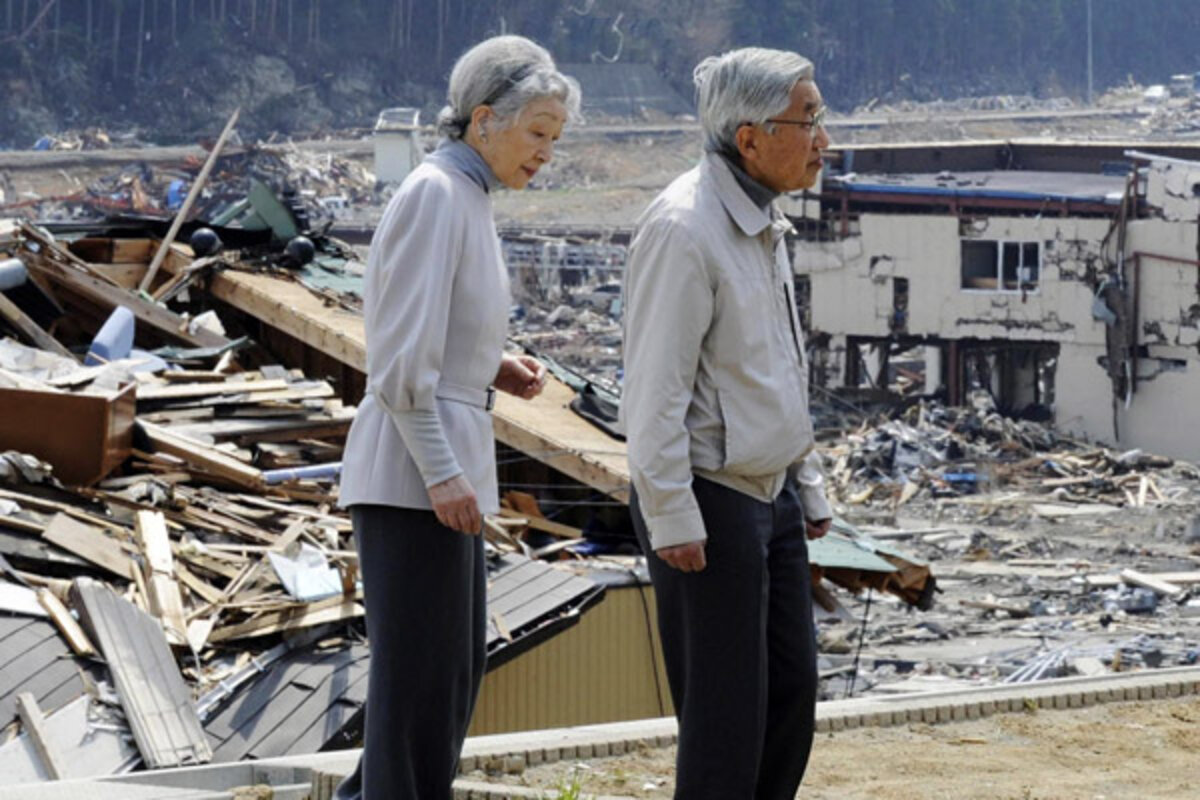 The deeply respected royal couple visited a school gymnasium where 200 people live in the town of Minami-Sanriku, 250 miles (400 kilometers) northeast of Tokyo. Excited crowds began gathering almost two hours before their arrival.