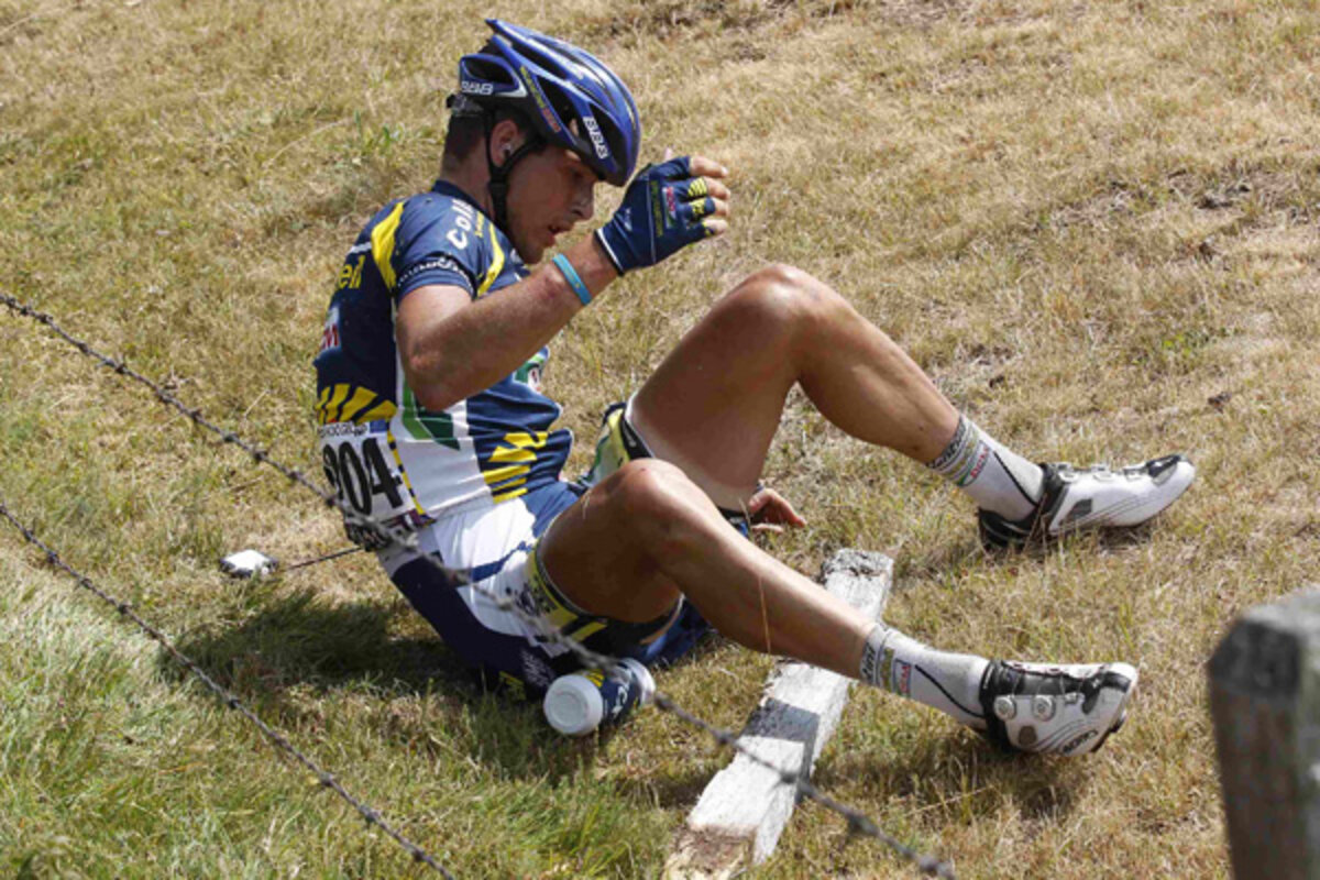 Team Sky rider Flecha was hit by a Tour television car trying to pass him on a narrow road, knocking him into Hoogerland.