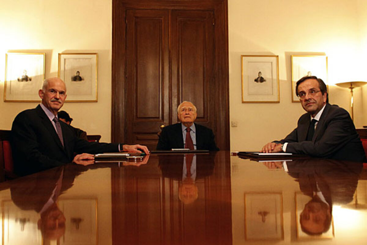 The agreement came after the two leaders held talks with the president in an effort to break a political deadlock and thrash out a deal for a national unity government demanded by the country's European partners.