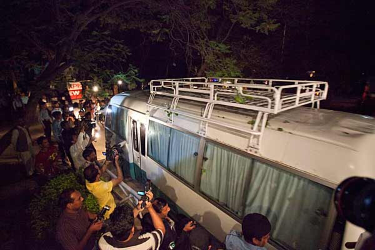 At the house in Islamabad where the family were being held, a white minivan pulled up to take them to the airport. The women refused to enter the van with a crush of media around it, so officials covered its windows with plastic sheets.