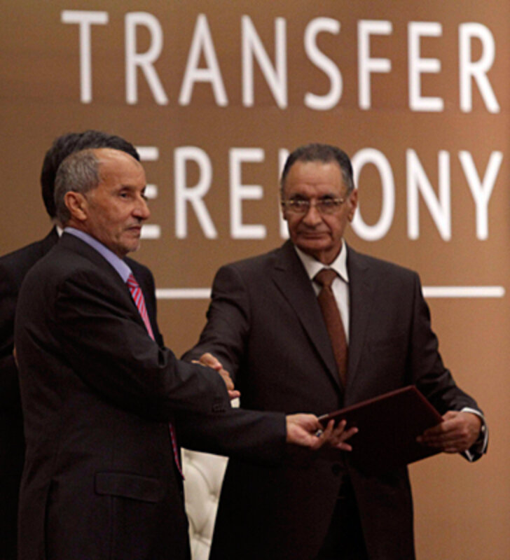 In a late-night ceremony held under tight security in聽Tripoli, the聽National Transitional Council聽(NTC), political arm of the opposition forces that toppled Muammar Gaddafi a year ago, handed over to the聽national congress, elected in July.