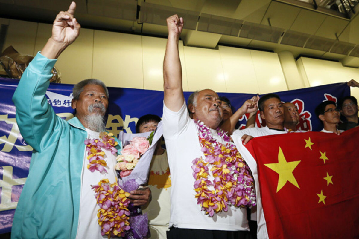 Amid emotional scenes, the men again asserted China's sovereignty over the islands and denounced Japan's actions as illegal. "The Diaoyus are a part of China," said activist Tsang Kin-shing to a massive throng of reporters at the arrivals gate.
